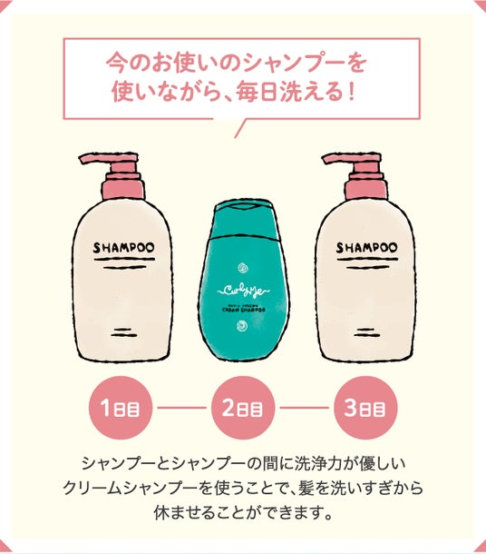 お使いのシャンプーを続けながら、クリームシャンプーを取り入れることで、髪を洗いすぎから休ませることができます。