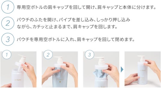 【シャンプー・トリートメント 詰め替え用パウチのセット方法】