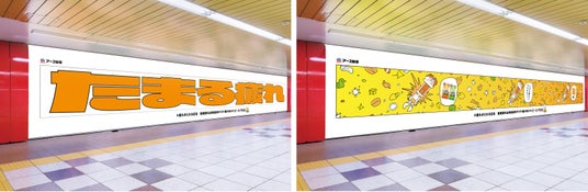 東京メトロ新宿駅メトロプロムナード 掲出イメージ(左:ピールオフ前、右:ピールオフ後)