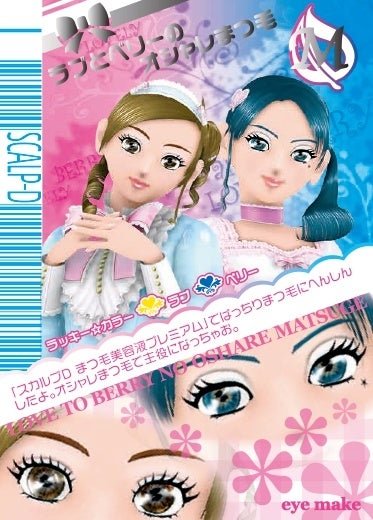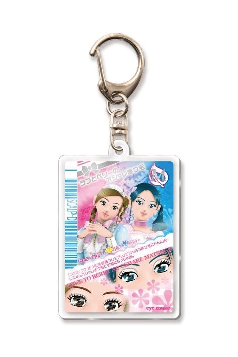 今回のコラボレーションでは、ピンクと水色を基調とした当時の人気衣装を纏ったラブとベリーのオリジナルアクリルキーホルダーとオリジナルカードをご用意しました。「スカルプDまつ毛美容液」シリーズとコラボレーションしたラブとベリーの「ぱっちりまつ毛」にご注目ください。また、そんな二人のイラストを活用したオシャレまほうカード風のデザインは今回のコラボでしか見ることができないスペシャルデザインとなっております。