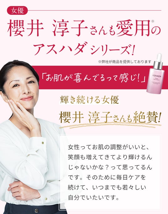 女優としてご活躍されている櫻井淳子さんに、アスハダのイメージモデルとしてご協力いただきました。