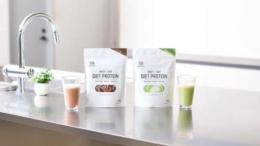 タンパク原料として、乳由来のホエイプロテインと大豆由来のソイプロテインを配合しています。1食20gでタンパク質を12.3g~12.6g摂取できます。