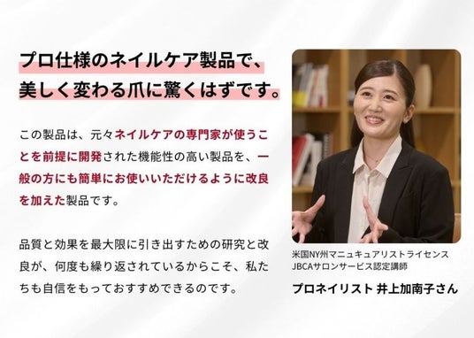 多くの研究機関での試験をクリアした信頼できる解決力で「地爪をケアし育てながらネイルを愉しむ日常」を目指す、サイエンス×自然派のネイルケア専門ブランドです。