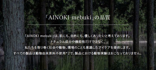「AINOKI mebuki」の製品には、いきいきとした目元へと導くために厳しい自然環境の中で育まれた植物成分が欠かせません。「輝く瞳」と名付けられたアイブライトエキス*1は、目の疲れや痛み、炎症への効果が期待されています。ブルーライトから目元を守ってくれるビルべリー葉エキスなども配合。