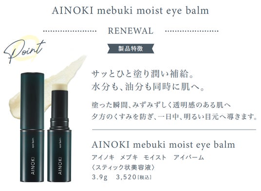 化粧品製造・販売をおこなうジャプロ株式会社(東京本社:東京都中央区日本橋小舟町8-6 H1O日本橋小舟町606)が展開する国産ヴィーガン、ナチュラルオーガニックコスメブランド「AINOKI mebuki(アイノキメブキ)」より、人気アイテムのアイバームがパワーアップして新発売。