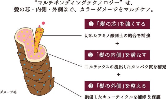 髪の芯・内側・外側まで、カラーダメージをマルチケア。