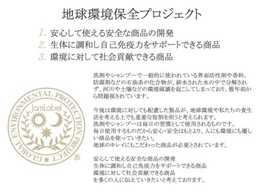 株式会社プライベートラボは、独自の製品開発基準[地球環境保全プロジェクト]を定め、2012年よりジャムレーベルシャンプーの製造販売を開始。