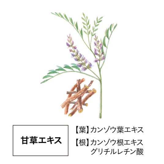 肌荒れを防ぐ3種*²の甘草由来エキスや、キメを整えなめらかな肌 に導く植物エキス*⁶を配合し、繊細な大人の肌をさまざまな刺激から守ります。
