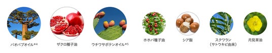 *1 保湿成分:バオバブ種子油、ザクロ種子油、オプンチアフィクスインジカ種子油、ホホバ種子油、シア脂、スクワラン(サトウキビ由来)、月見草油