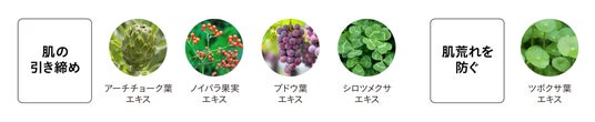 *6 保湿成分:アーチチョーク葉エキス、ノイバラ果実エキス、ブドウ葉エキス、シロツメクサエキス