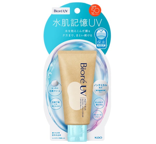 そこでこのたび「ビオレUV」は、主力の「アクアリッチシリーズ」から初めて、ノンケミカル処方(紫外線吸収剤フリー)の日やけ止め『ビオレUV アクアリッチ ウォータリーホールドクリーム』(通称:水肌記憶UV)を全国発売します。「アクアリッチシリーズ」ならではのみずみずしい使用感と高い紫外線防御効果を実現した商品です。