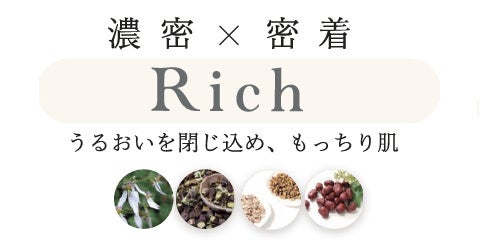 使用感や配合成分の異なる「リッチシリーズ(化粧水・クリーム)」「バランスシリーズ(化粧水・クリーム)」の2シリーズを、めざす肌や使用シーンに合わせ、アイテムを選び、自由に組み合わせてお使いいただけます。