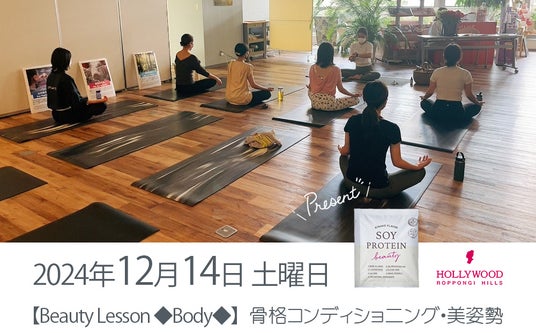 ハリウッド株式会社(本社:東京都港区六本木)の本社ビルで、『SOY PROTEIN beauty ソイプロビューティ』が応援する、モデルでピラティスインストラクター岡めぐみさんのピラティスレッスンの2024年最後のレッスンが開催されます。新年の美容と健康を幸先よくすたーとするために、ぜひご参加ください。
