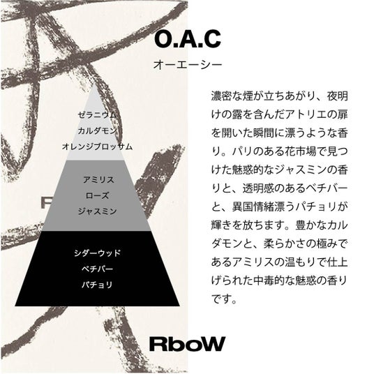 株式会社インテルコスメシ・ジャパン(本社 東京都渋谷区/代表取締役社長 豆田 健司)は、韓国発の【RboW(アールボウ)】からケーススタディ オードパルファムO.A.C(オーエーシー) 30mLの販売を開始します。