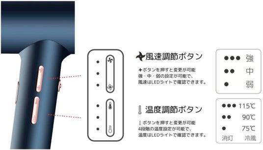 また、独自の送風口の技術&高速BLDCモーターにより消費電力を抑えてヘアドライが可能になりました。素早く効率的に、少ないエネルギーでより強力な風を生み出すことができる設計を実現。