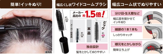 メーカー品比約1.5倍、約45mmの幅広クシ状ワイドコームブラシで広範囲の白髪も簡単にぬれます。