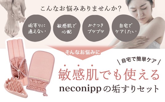いつもご愛顧いただきありがとうございます。もっとヘルシーな毎日を(ハート) neconippがご自宅でもっと洗練された自分になりたい女性に向けて、充実したセット内容で”垢すりセット”をリリースいたしました。