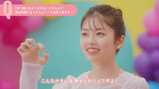 最近笑顔になったのは、番組の企画で十数年ぶりに金魚すくいをしたんです!それがめちゃくちゃ楽しくて。ポイをなるべく水から逃しながらすくうことがコツと聞いて、実際にこんな大きい金魚がとれたんですよ!それがすごく嬉しくてめちゃくちゃ楽しみました!