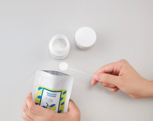 ウォッシングパウダー(ゆずの香り)、ウォッシングパウダー(ジンジャーの香り)をお好みでボトルに詰め替えていきます。
