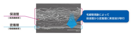 2層構造のハイブリッド不織布が、美容液の高い浸透性と効果的なリフトアップを実現