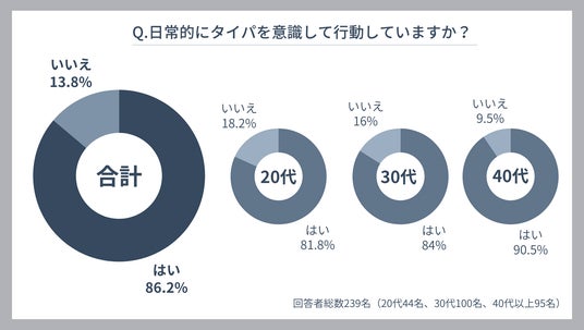 今回の調査で日常的にタイパを意識して行動しているかどうか尋ねたところ、全体の86.2%が「はい」と回答しました。