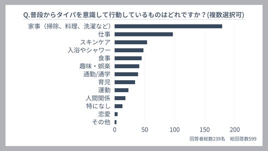 – 「普段からタイパを意識している場面」としてもっとも多かったのは家事(179票)、次いで仕事(97票)、スキンケア(54票)。