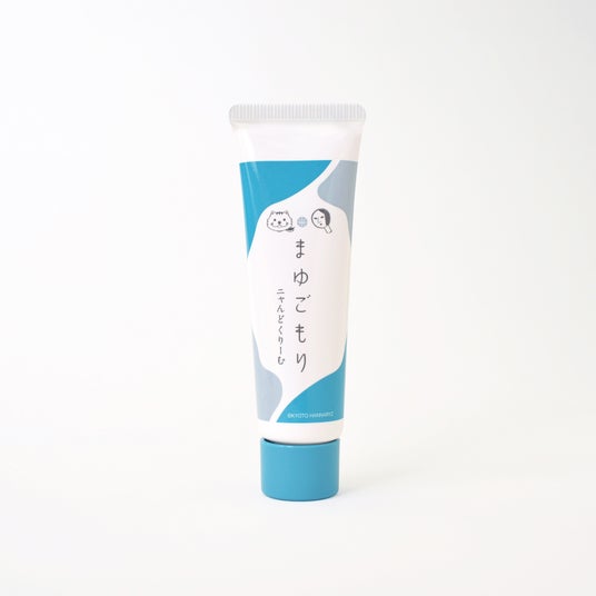 「よじこ」と「はんニャリン」コラボデザインのまゆごもり はんどくりーむ。いつも元気いっぱいな「はんニャリン」のいたずらで、はんどくりーむが“ニャんどくりーむ”という名前になってしまいました。天然保湿成分「セリシン」配合で、清潔感のある、やさしいフローラルの香り。