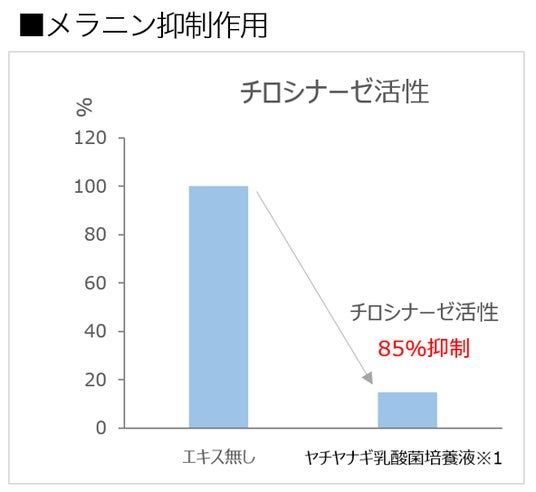 自社農園のヤチヤナギの葉から採取した独自の自社菌株“ヤチヤナギ乳酸菌”の培養液。乳酸や20種のアミノ酸、4種のビタミンB類、ぺプチド類、ポリフェノール類といった美容成分を豊富に含み、浸透性と 保湿性にすぐれたポストバイオティクス成分です。ゲノム解析では抗菌物質を産生できる可能性も示唆されており、さらなる美肌効果が期待されています。