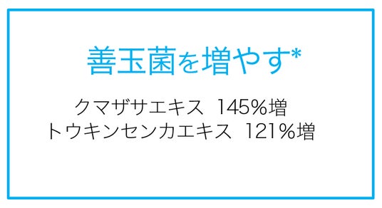 2つの新成分の相乗効果で、善玉菌は133%増、悪玉菌は65%減*