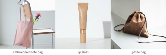 – 22,000円(税込)以上ご購入の方:embroidered tote bag + lip gloss(coussinet、pur、fraise、toffeeのいずれか)