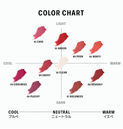 COOL WOMENのATTITUDE(態度)を込めた10種類のカラーで気分やなりたいイメージに合わせて選べます。