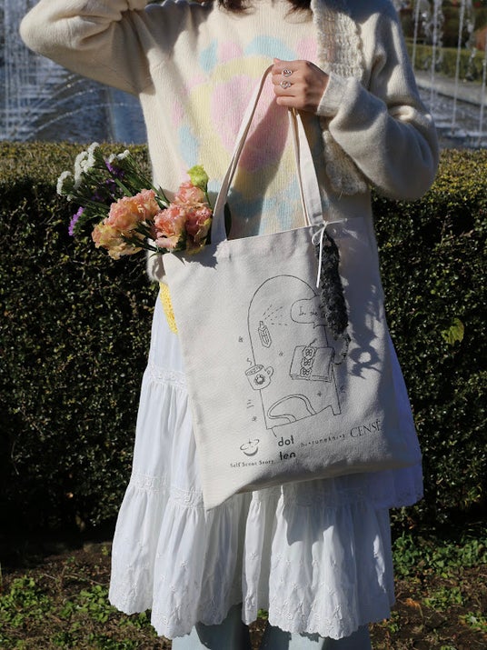 ” In the Secret Garden “オリジナルのトートバッグにニットの栞、マグカップ、フレグランススプレーが入ったセットを数量限定で販売します。カラーはgrayとwhiteの2種類。