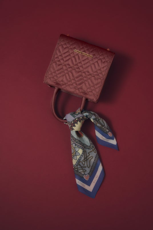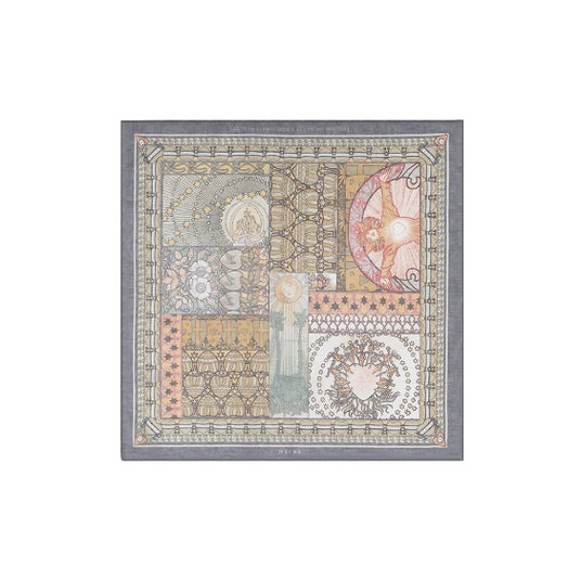 六芒星や縁飾りなどをベースに作品に散りばめられた様々なハートを集約し、ミュシャの世界を1枚に凝縮させ誕生したオリジナルのプリントハンカチ。薄手のコットンを使用し、バッグに結んだり、バンダナのようにコーディネートのアクセントとしても使用可能な大判タイプ。大切な人へのギフトにもおすすめです。