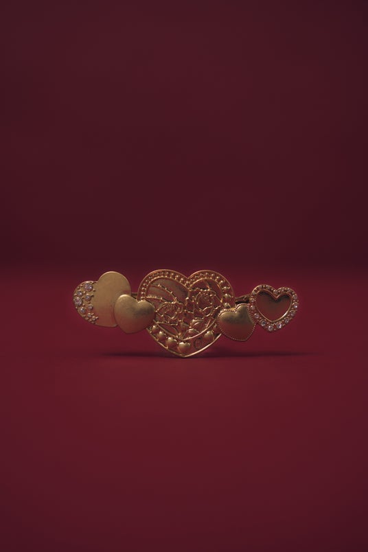 ハートを大胆にあしらったバレンタインらしさあふれるデザインのバレッタは、アンティーク調のゴールドを使用。サイドにストーンをあしらい、煌びやかな印象に。