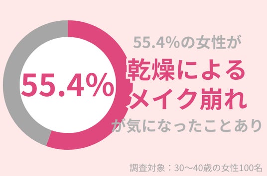 調査の結果、30代女性のうち55.4%の方が、乾燥によるメイク崩れが気になったことがあるとわかりました。とくに口周りは、乾燥しやすく、せっかくメイクをしても、ポロポロ・モロモロが出てきてしまう事もあります。