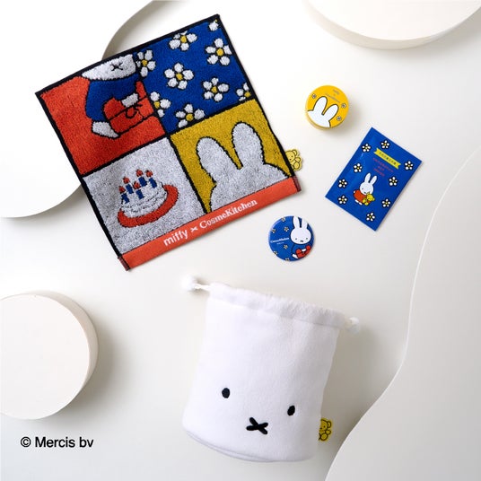 miffyとCosme Kitchenのバースデーをお祝いするようなスペシャルなデザインのタオルハンカチ。オーガニック素材にこだわり、やさしさあふれるふんわり仕上げで、心も肌もときめく一枚。