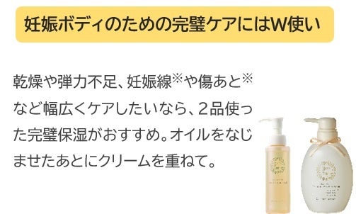 妊娠ボディ用クリーム「ナチュラルマーククリーム」と「マークリペアオイル」の使い分け