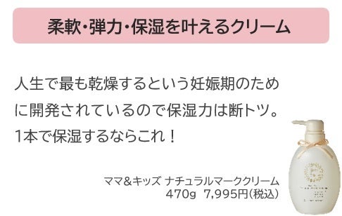 ママ&キッズの「ナチュラルマーククリーム」は長年妊娠ボディ用のクリームとして妊婦さんに愛用いただいてきましたが、妊婦さんの悩みは妊娠中だけでなく、産後にもあります。