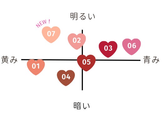 07は、いちばんナチュラルな発色!少しだけ白みが入った、明るめのコーラルです。