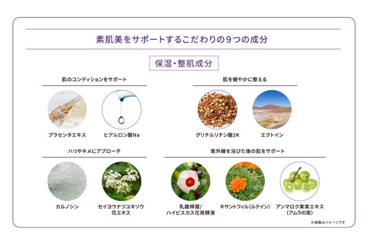 日中の乾燥や紫外線による悪影響から肌を守る美容成分を厳選。