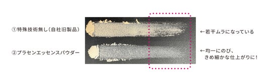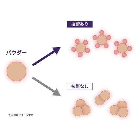 パウダーのまわりに小さい球状のパウダーをまとわせる特殊技術で、パウダー同士の付着を防ぐことに成功!するすると軽やかに肌に広がり、ムラのない滑らかな仕上がりに。