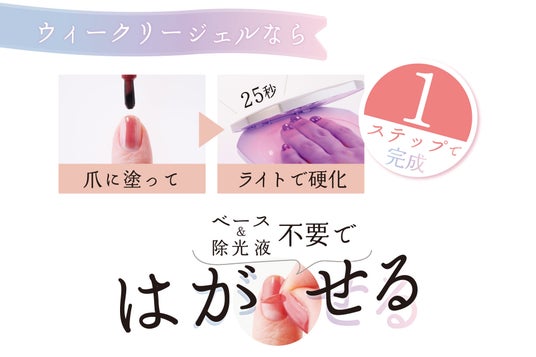 これ1本で”ぺりっと”はがせて、なのに長持ちするジェルネイルなので、日常使いから、特別なお出かけの日まで、トレンドのネイルを簡単にお楽しみいただけます。