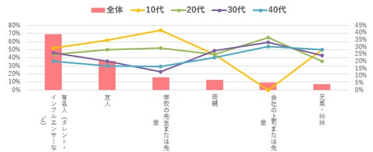 10代は「学校の先生or先輩」、20・30・40代は「会社の上司or先輩」と回答