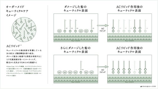 近年ハイライト・バレイヤージュなどヘアデザインの多様化により、1本の髪の中でも根元と毛先のダメージ差は大きくなっています。「OSD09」では、ダメージ補正機能のあるオーダーメイドケアシステムを開発し、1本1本の髪に最適なケアを可能とすることで、根元から毛先まで均一でしなやかな手触りを実現します。