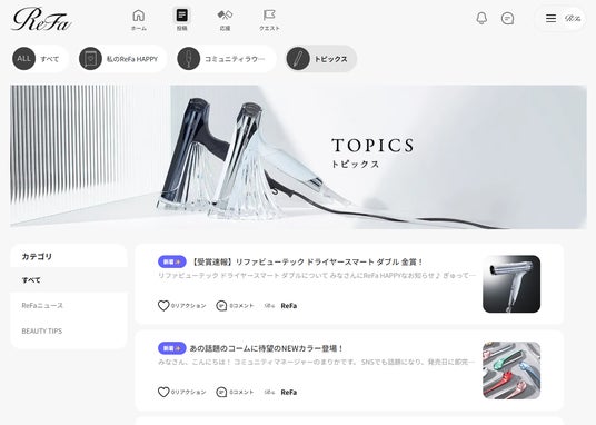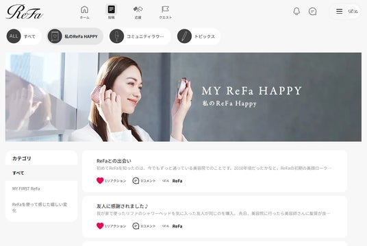 ReFaからの情報を受け取ったり、日頃意識していることや悩みごと、ReFaのある暮らしで得たHAPPYな体験などを、参加者がSNSのように気軽にシェアしたりすることができる、無料のウェブサイトです。