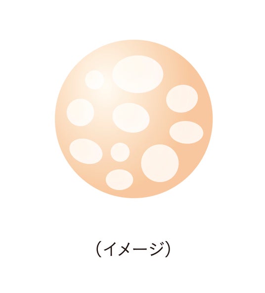 種子油、シア脂、チャ葉エキス、カンゾウ根エキス、グルコシルヘスペリジン、リン酸アスコルビルMg、ガゴメエキス、ヨーロッパシラカバ樹皮エキス、α-グルカン、トゲキリンサイ/ミツイシコンブ/ウスバアオノリエキス、ゲットウ葉エキス、グルコシルセラミド、加水分解コンキオリンタンパク、リン脂質、アセチルヘキサペプチド-8 *8 シリカ・グリセリン・リン脂質・ホウケイ酸(Ca/Al)