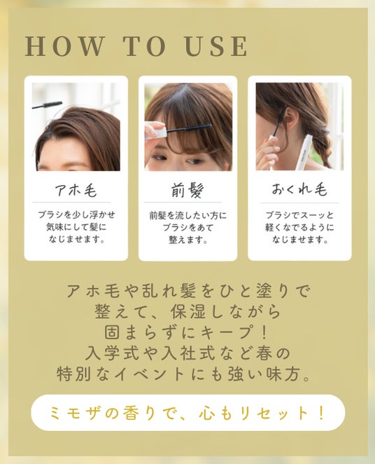 ふわっと爽やかで幸福感のあるミモザをイメージした、軽やかな春の訪れを感じていただける香りです。