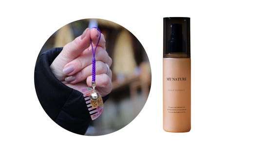 左からマイナチュレ育毛剤/献髪/髪への願い を奉納