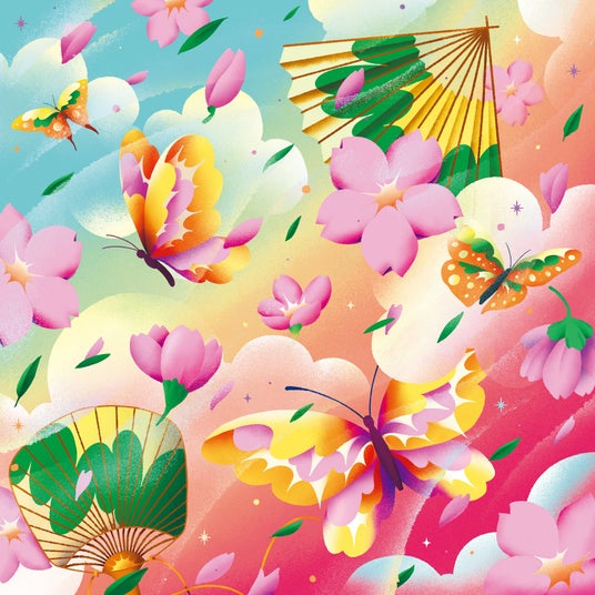 春のシンボル・蝶が舞う美しいイラストは、ブラジル・サンパウロを拠点に活動するアーティスト・Kenzo Hamazakiが手がけたものです。