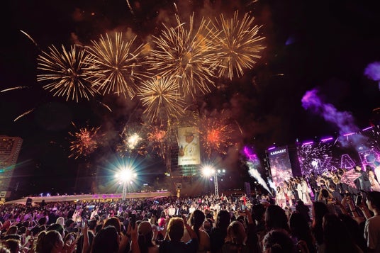 『KARMART(カルマート)』の巨大なネオンサインが輝く、華やかな会場で、大きな花火も上がり、イベントは盛大に挙行されました。